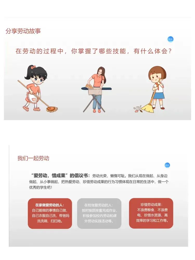 勤劳是中华民族的传统美德之一,是品德的象征。班主任老师组织学生交流讨论寒假日常劳动,回顾劳动带来的快乐和收获,引导全体学生懂得劳动最光荣的道理,懂得责任与担当,养成学生爱劳动、会劳动、能劳动的良好习惯。