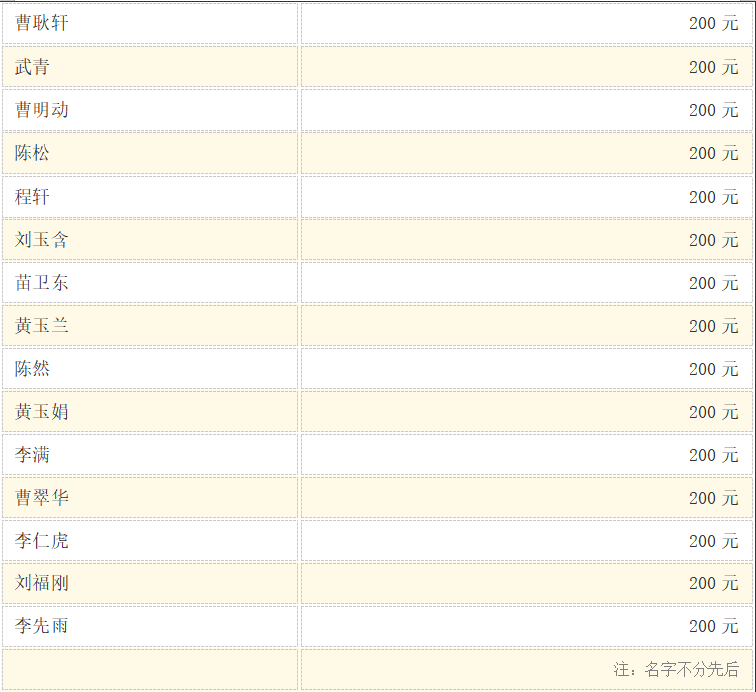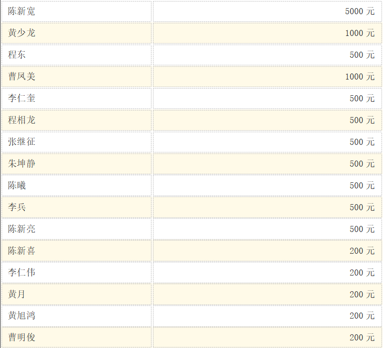 公益爱心捐赠名单