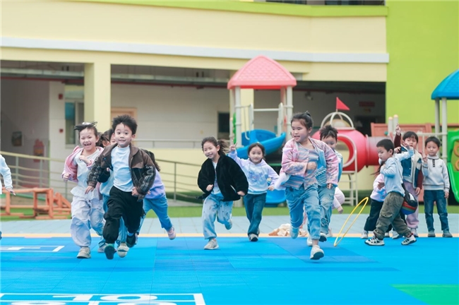 孩子们在新操场上奔跑跳跃