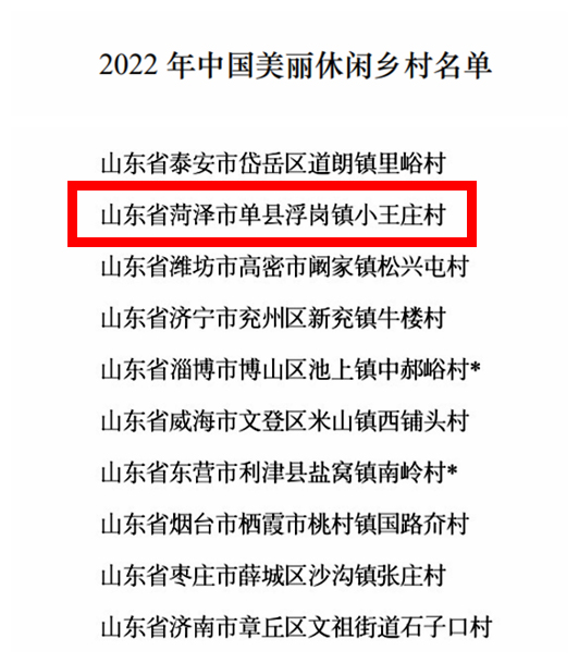 近日,农业农村部开展了2022年中国美丽休闲乡村推介,经各省遴选推荐、专家评审和网上公示,推介255个乡村为2022年中国美丽休闲乡村,其中菏泽单县的浮龙湖南岸小王庄村入选
