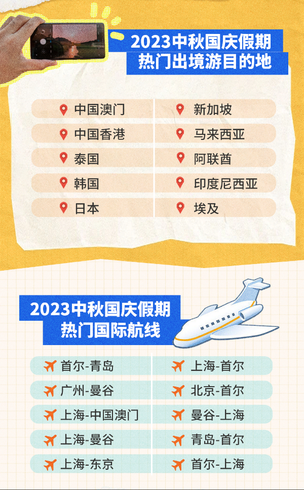 出境游市场也迎来了重要复苏节点。携程《中秋国庆旅游总结报告》数据显示,假期期间,出境游订单同比增长超8倍。同程旅行《2023中秋国庆假期旅行消费报告》显示,出境游热门目的地分别为中国澳门、中国香港、泰国、韩国等。此外,欧洲、非洲、南美洲、澳大利亚等长线出境游目的地热度也出现快速增长。