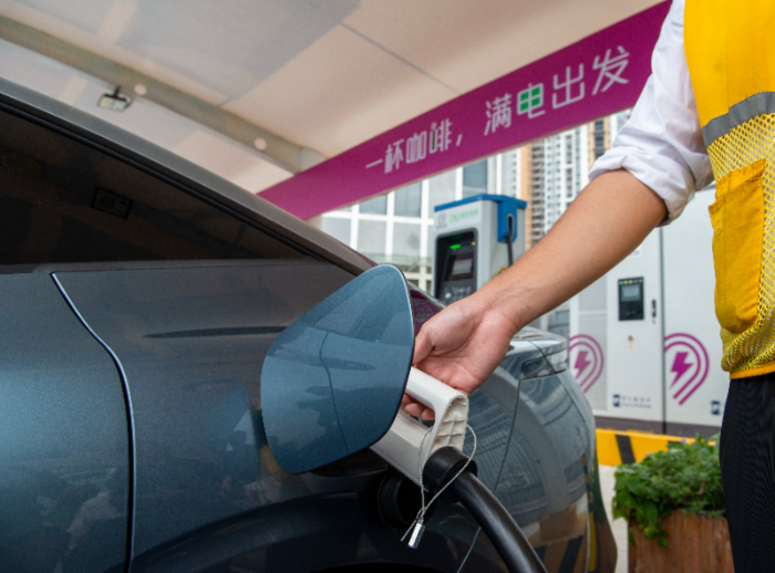 (资料图片)工作人员为一辆新能源汽车插枪充电。新华社记者 徐嘉懿 摄