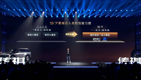 Momenta作为国内首家实现一段式端到端智驾大模型量产的企业,在传祺 S7 智驾系统开发过程中与广汽集团深度合作,共同打造全场景高阶智驾方案。该系统模型通过将感知、规划、控制融合为一个大模型,大幅缩短了数据传递过程,提升了模型的场景认知能力,算法性能上限更高。