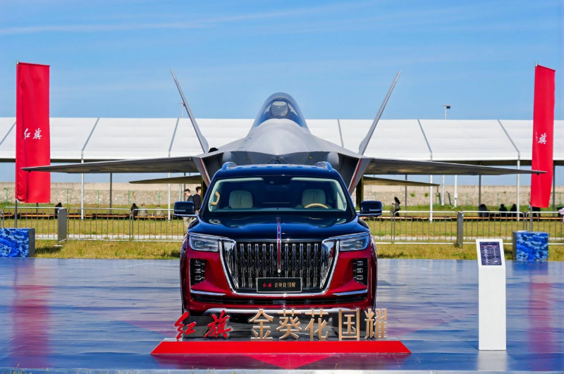 这些被定格的画面,生动诠释了本次活动“追梦空天、制胜未来”的主题,通过飞行表演、装备展示和互动体验等多种形式,串联起人民空军从“国土防空”迈向“空天一体、攻防兼备”的战略转型之路。回顾活动现场,还有一抹“中国红”格外亮眼:全场唯一1:1歼-35A模型亮相一汽红旗展台,与红旗金葵花国耀、全新一代大五座旗舰SUV HS6 PHEV、红旗天工06、天工08等多款重磅车型并肩而立。“天地同框,陆空双擎”,红旗品牌以奋进之姿开启这场陆空重器的对话,共同展现守护万家灯火的硬核实力,彰显中国工业自主创新的精神内核。