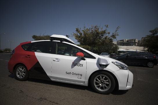 9月16日,在以色列特拉维夫,一辆自动驾驶汽车在道路上行驶。