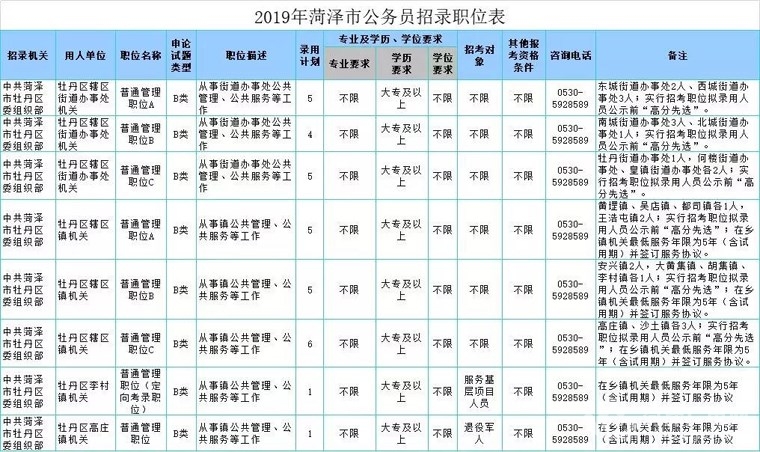2019年菏泽市考试录用公务员公告