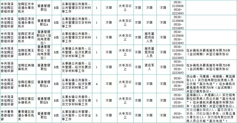 中共菏泽市定陶区委组织部:0530-2129606、2223693