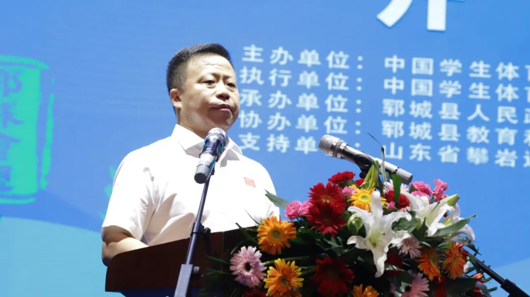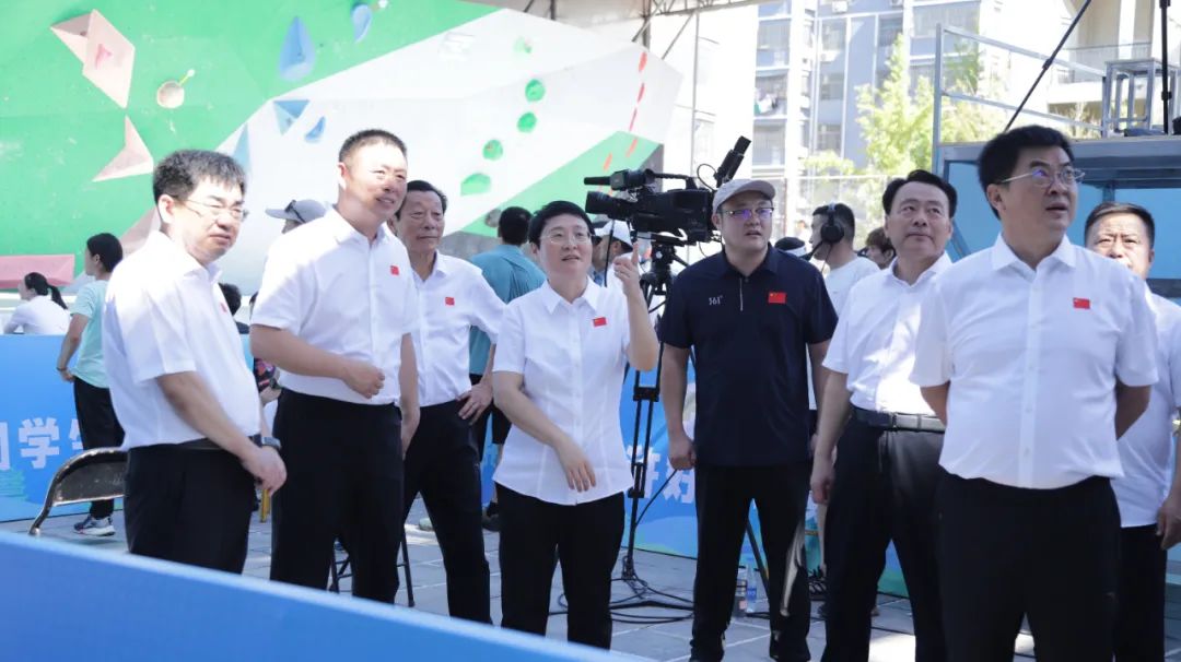 中国学生体育联合会攀岩分会主席单位、长春大学副校长张洪杰,中国学生体育联合会暑期赛事监督员王学东,中国学生体育联合会攀岩分会副主席朱江华,中国学生体育联合会攀岩分会秘书长董亮,山东省体育中心主任许铁军,山东省攀岩协会秘书长王松林,菏泽市委常委,常务副市长臧伟,菏泽市教体局党组书记史长华,菏泽市教体局党组成员、副局长王奉勇,郓城县委副书记、县长张晖,宋江武校校长樊庆斌以及裁判员、技术官员、教练员、运动员参加开幕式。开幕式由郓城县人民政府党组成员、副县长王永合主持。