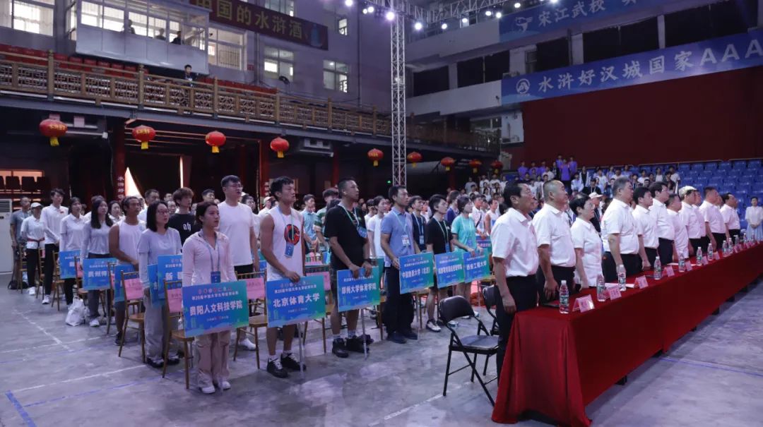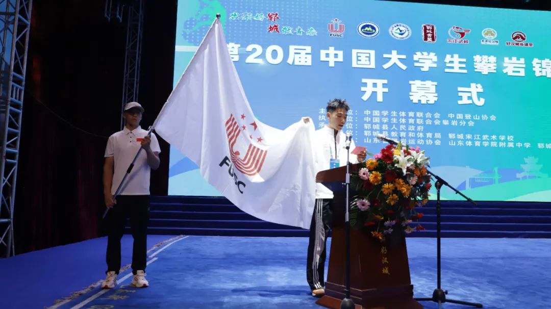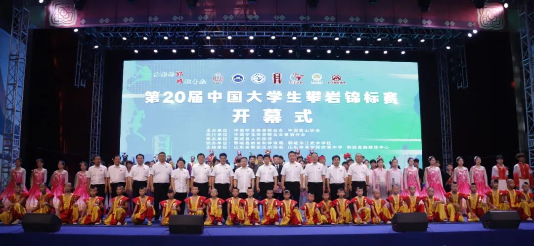 7月30日,“岩聚好郓 城就未来”第20届中国大学生攀岩锦标赛在郓城宋江武校狗娃剧场举行开幕式。