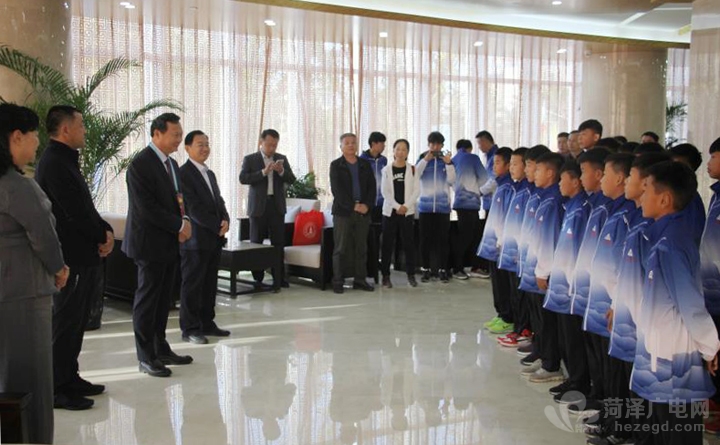 菏泽广电网讯 (记者:万峰)10月12日上午,副市长高荣国、市体育局局长李永辉一行前往青岛看望了即将参加第24届山东省运动会男子足球乙组决赛的菏泽代表队,并对他们致以亲切慰问,鼓励他们取得好成绩。副市长高荣国对小队员们做了战前动员和讲话,希望他们不怕困难,英勇顽强,争取取得更好的名次和更好的成绩,为全市人民争光!