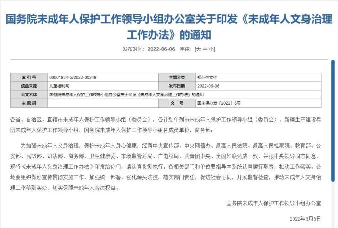 就在“文身”风潮在未成年人群体的影响力和接纳度开始有明显上升趋势时,国务院未成年人保护工作领导小组办公室印发《未成年人文身治理工作办法》,对未成年人文身说“不”!