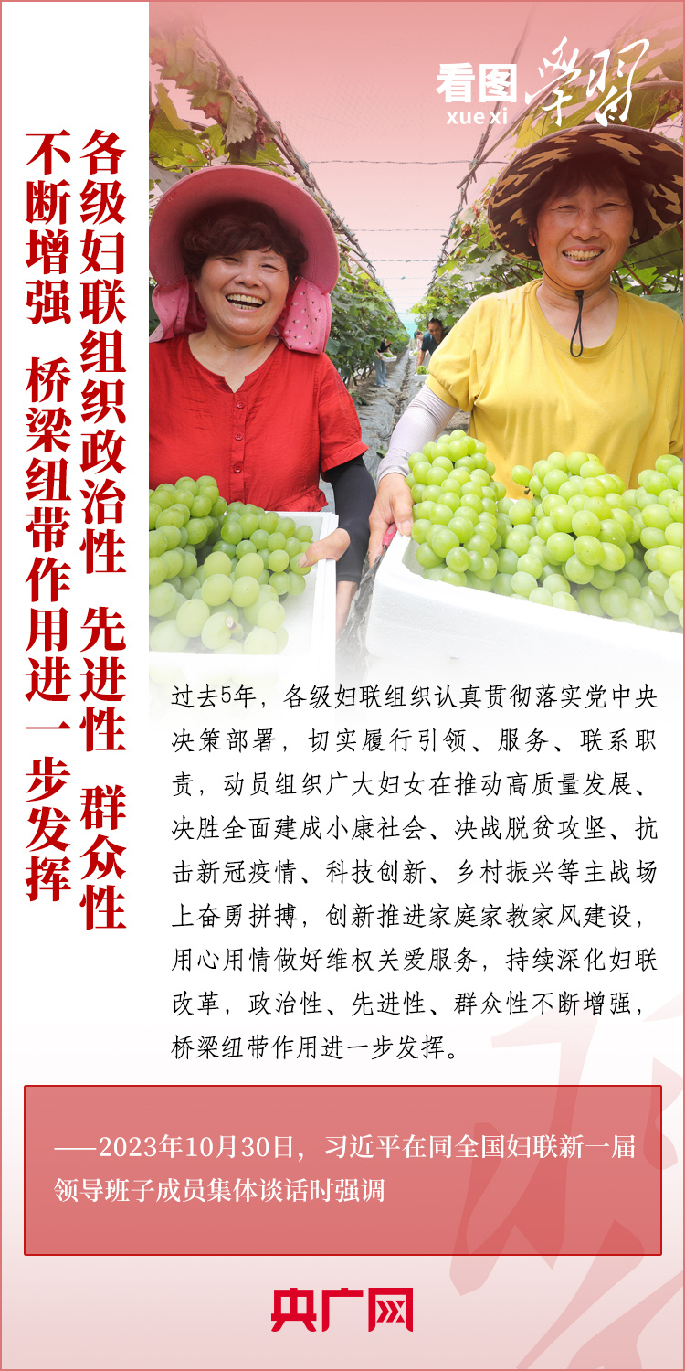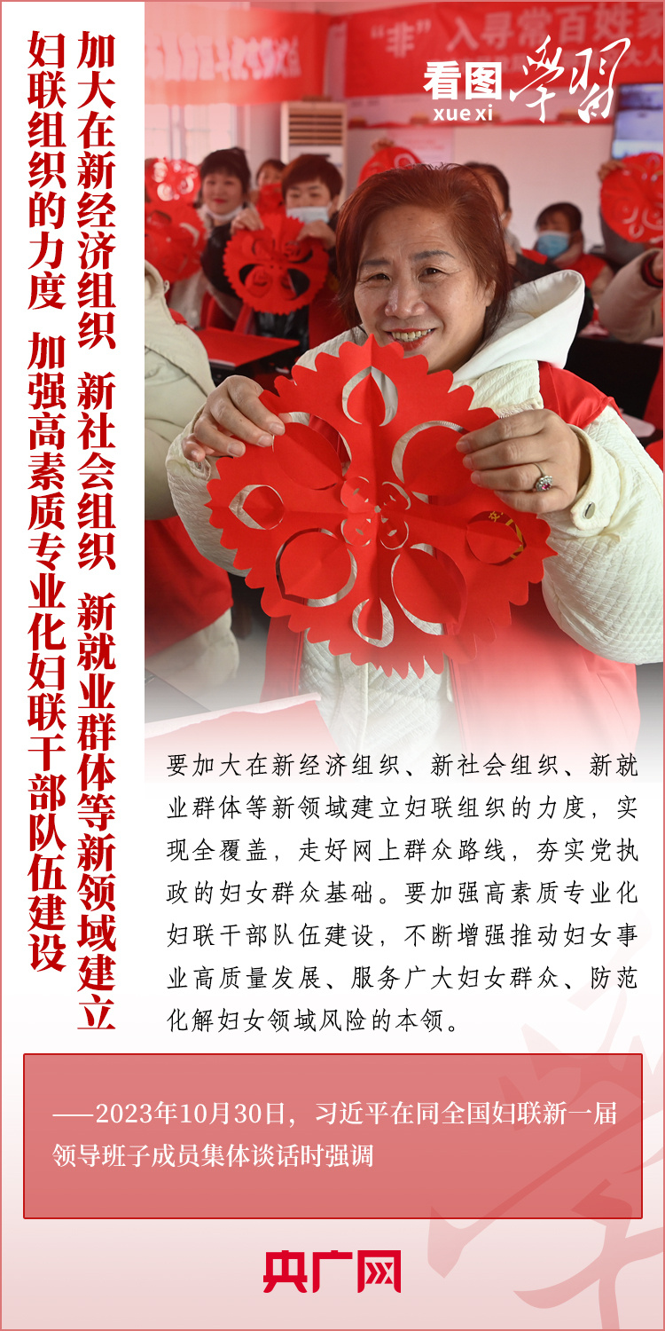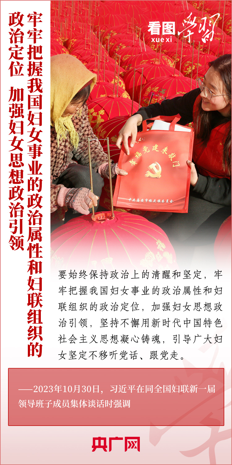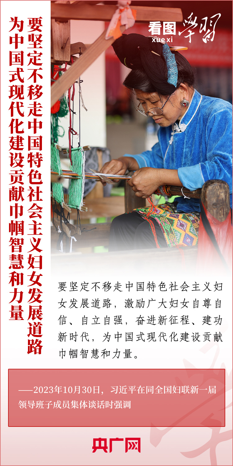 10月30日下午,习近平总书记同全国妇联新一届领导班子成员集体谈话并发表重要讲话。总书记强调,要坚定不移走中国特色社会主义妇女发展道路,激励广大妇女自尊自信、自立自强,奋进新征程、建功新时代,为中国式现代化建设贡献巾帼智慧和力量。一起来学习!