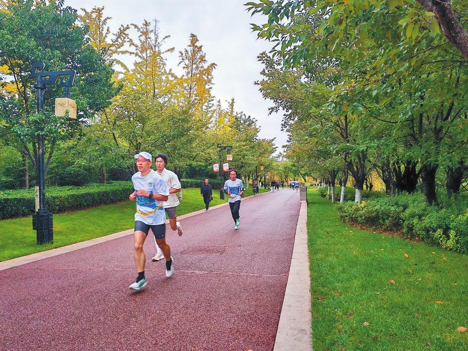 在昭阳秋色中奔跑。 本报记者 沈迅 摄