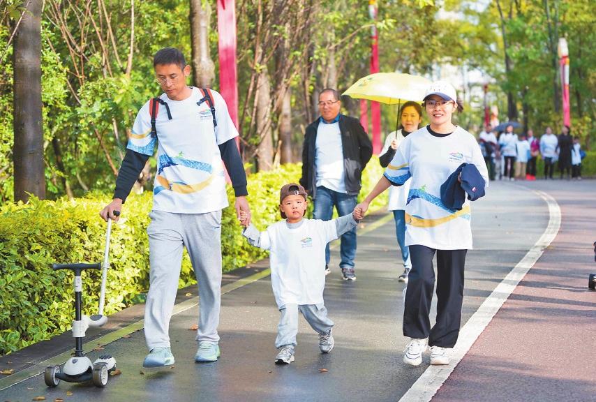 9时,健步走活动开启。在健身教练带领下,大家认真地做起热身运动。一声发令枪响后,参加活动的745名健步走爱好者分为成人AB组和亲子AB组开始健步走。活动中,大家精神抖擞、昂首阔步,沿途欣赏着美景,呼吸着“天然氧吧”的新鲜空气,享受着健步走带来的激情,传递健康活力。此外,活动亲子组还特别设置4公里迷你健步走路线,配备自然科普讲解员,带孩子认识多样性植物、鸟类。