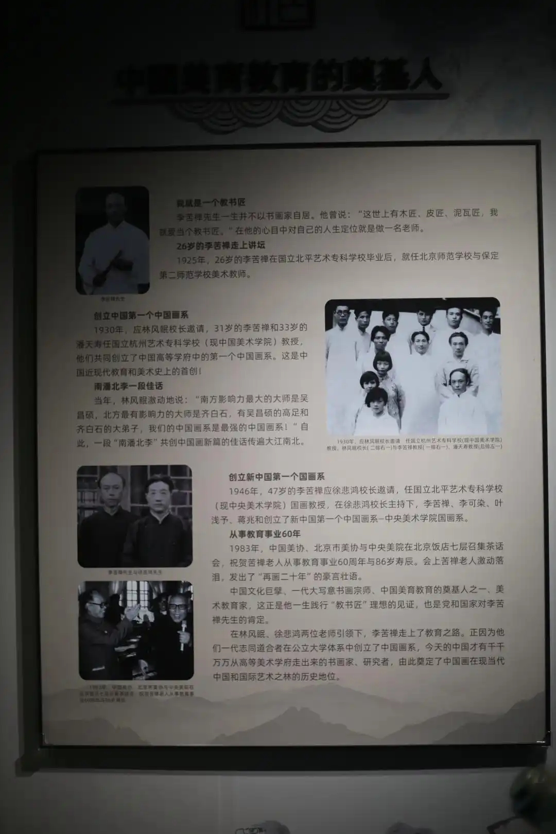 回顾从受林风眠邀请进入杭州艺专,到受徐悲鸿邀请入北平艺专再到中央美术学院,李苦禅执教半个多世纪,其艺术思想影响了无数学子。在艺术教育方面,他既主张走艺术开拓的道路,又注重提示学生注重画外功夫的陶冶和积淀,他把西方的雕塑和中国画的造型笔墨交融起来,注重诗书画印的总体修养,坚持学生要吸收中国与西方两者文化素养的道路。而他自己正是因为有这种宽阔的文化胸怀和宽广的文化视野,引西问中,成为学贯中西的艺术大家。