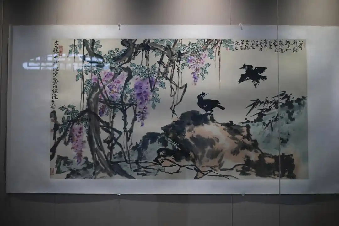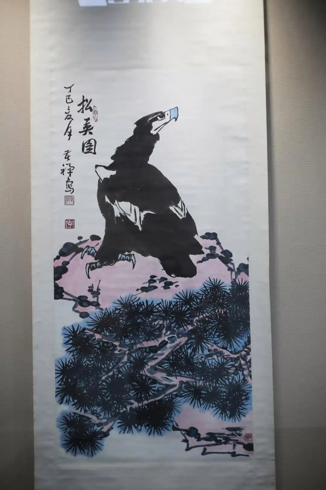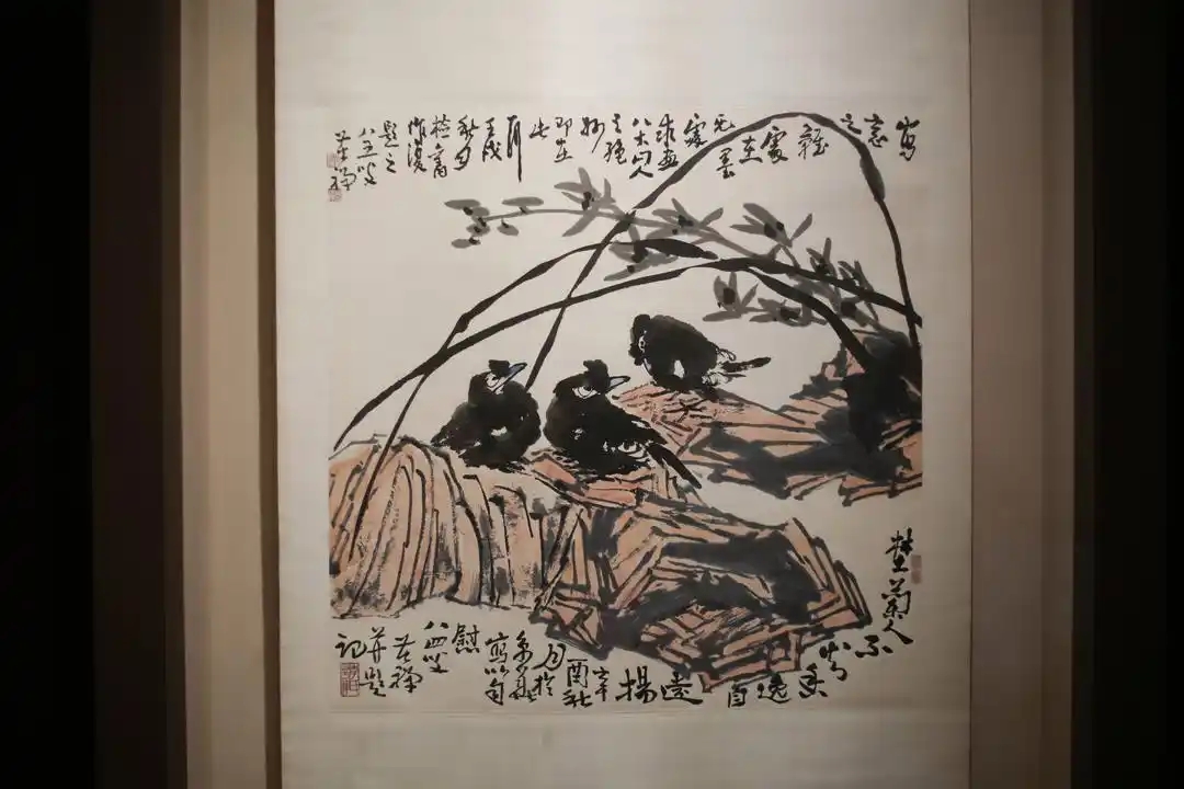 他作品中有的画风细腻温柔,有的画风气势磅礴,花鸟如有神会,山水浓墨朴实,被大家尊称为中国近现代大写意花鸟画宗师。