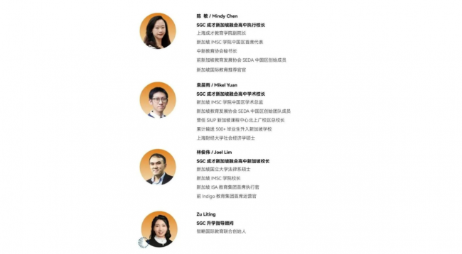 SGC成才新加坡融合高中采用“新加坡+中国”双管理团队,管理团队是中国国内首批从事新加坡国际教育的领路人。深耕新加坡教育多年,了解中国学生学情,在新加坡国际教育领域拥有丰富的教育、教学管理经验和良好的声誉。
