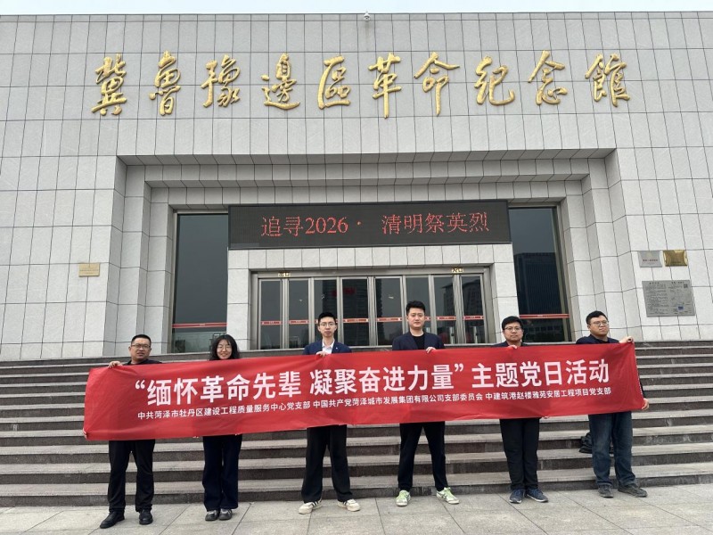 清明时节雨纷纷,牡丹含苞敬英烈。中建筑港五公司赵楼雅苑项目党支部为持续深化红色教育、传承革命精神,联合菏泽城市发展集团有限公司党支部、菏泽市牡丹区建设工程质量服务中心党支部,共同赴冀鲁豫边区革命纪念馆开展“缅怀革命先辈,凝聚奋进力量”主题党日活动。