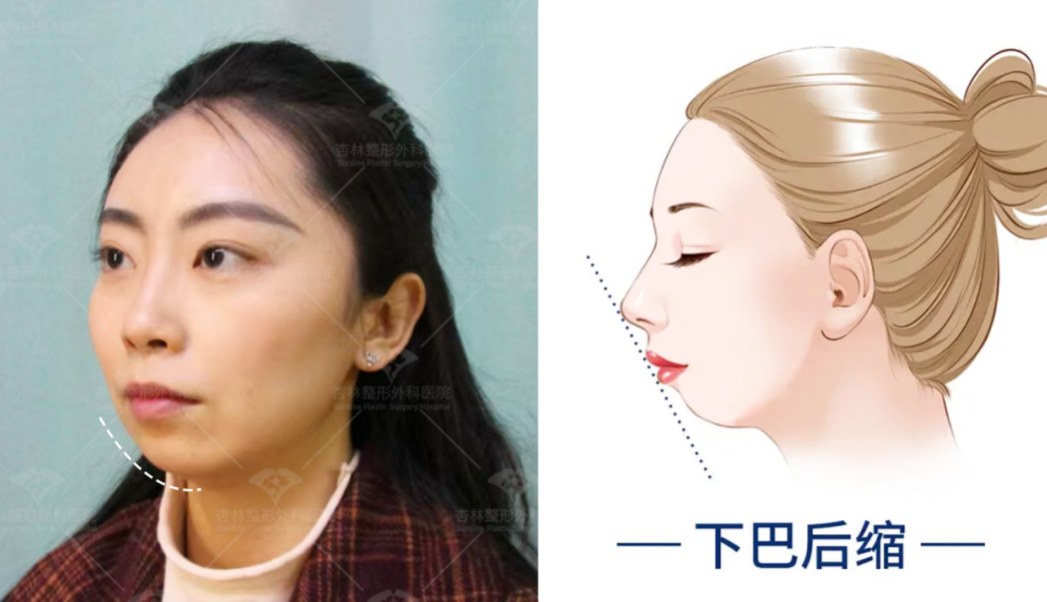 下巴后缩会导致面下1/3 垂直高度不足,打破面部 “三庭” 均衡比例,呈现上重下轻的视觉不协调感。